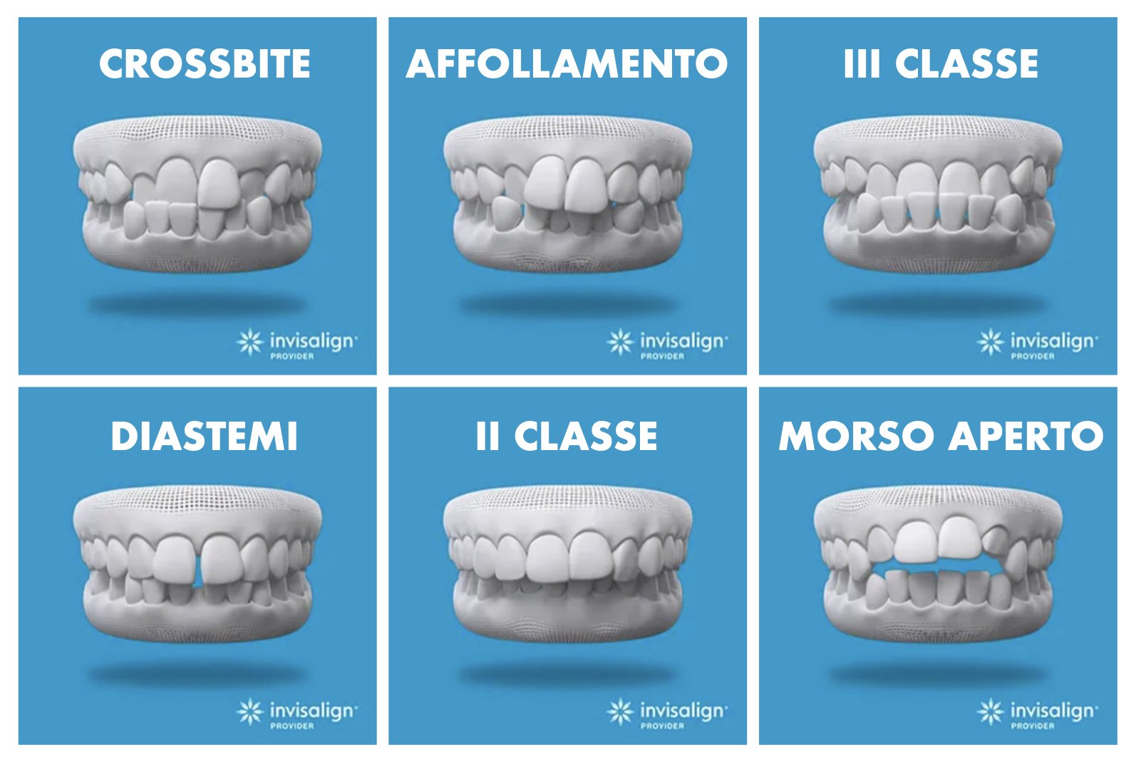Il sistema Invisalign rappresenta una soluzione moderna in grado di trattare la maggior parte delle malocclusioni dentali. Grazie ai progressi tecnologici e alla capacità di personalizzare i trattamenti, oggi Invisalign riesce a correggere molti problemi che in passato richiedevano necessariamente apparecchi tradizionali. Abbiamo visto in altri articoli come il trattamento sia adatto a bambini ed adulti. Ma quali condizioni è in grado di risolvere? Le principali condizioni che possono essere trattate con Invisalign includono il crossbite, l’affollamento dentale, i diastemi, la II classe, la III classe e l’open bite. Esploriamo nel dettaglio queste condizioni, scoprendo come riconoscerle e comprendendo le problematiche che possono causare se non debitamente trattate.